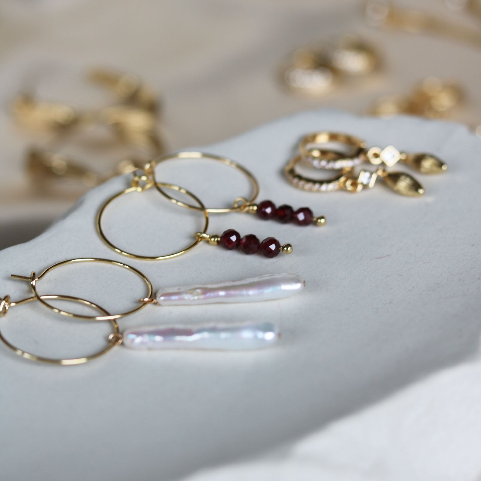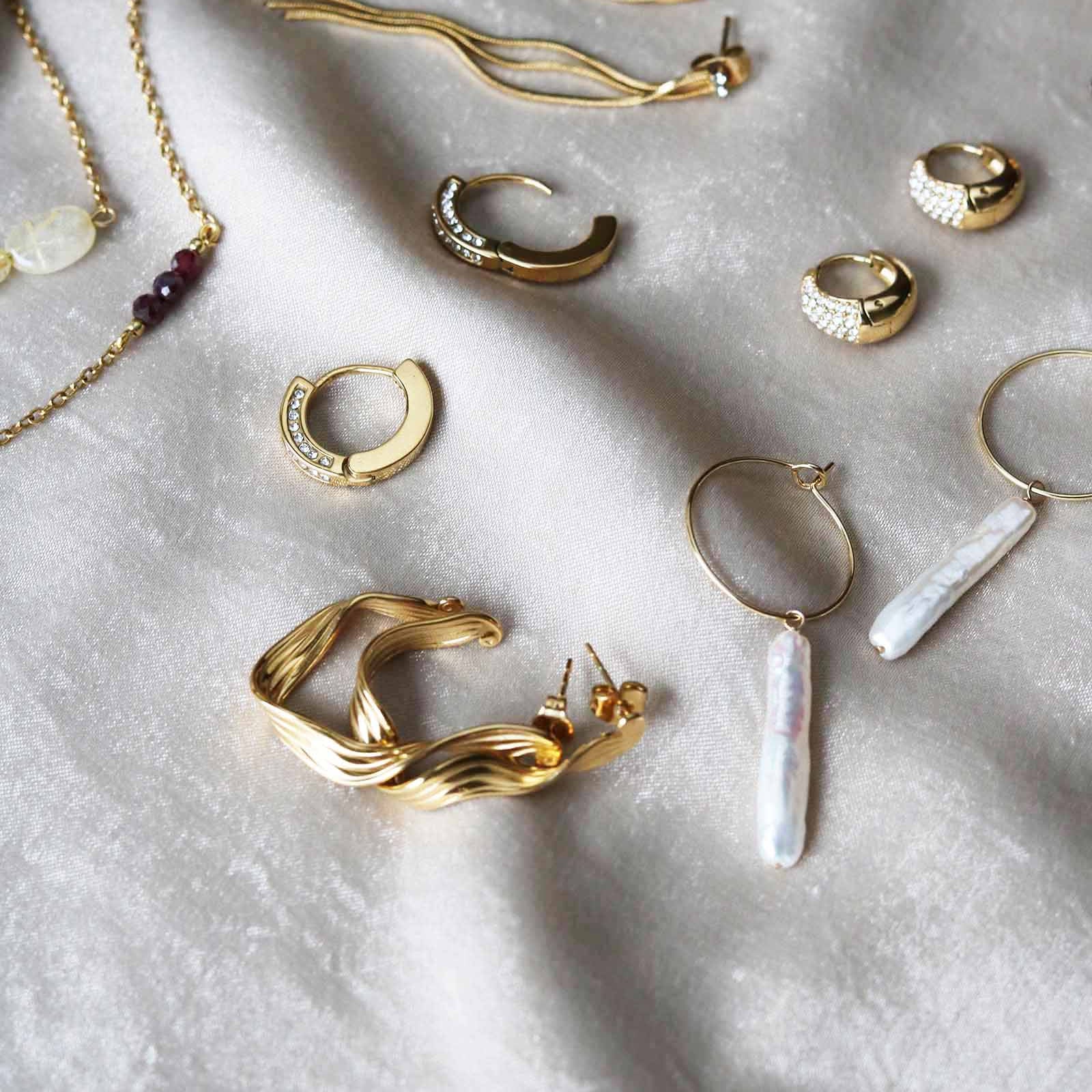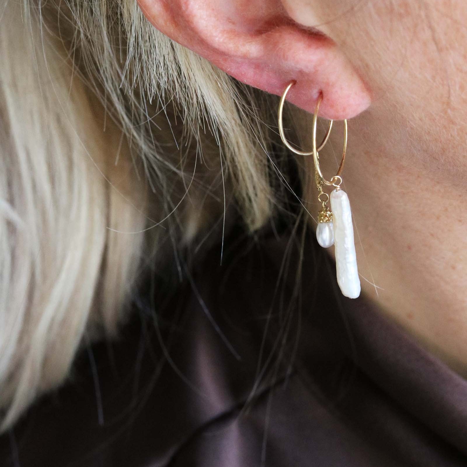 Dunne oorringetjes met langwerpige parelsmateriaal: stainless steelnatuursteen:maat: 3,5 cm