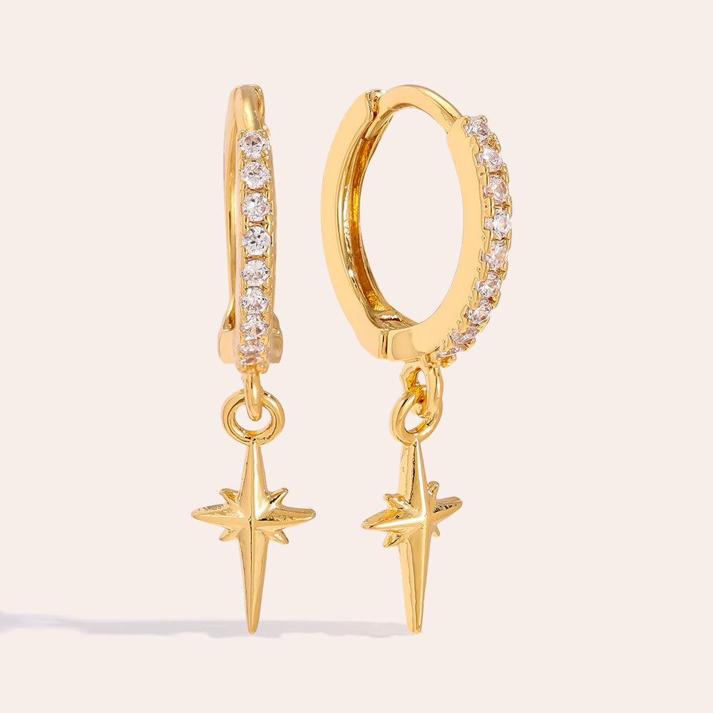 Subtiele oorringetjes met steentjes en subtiel ster-hangertjemateriaal: verguldkleur: goud maat: 2,5 cm