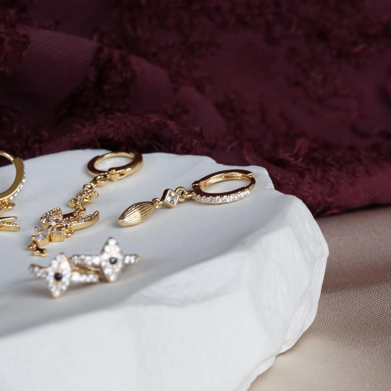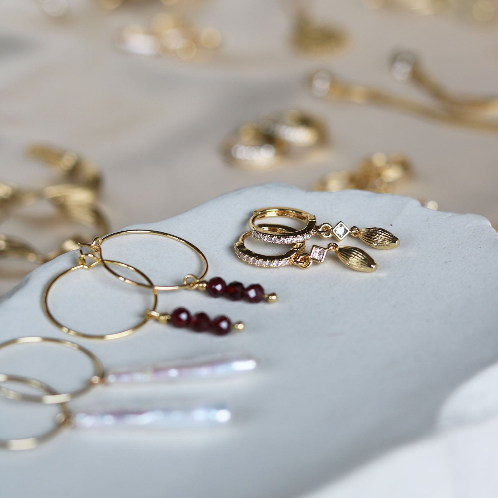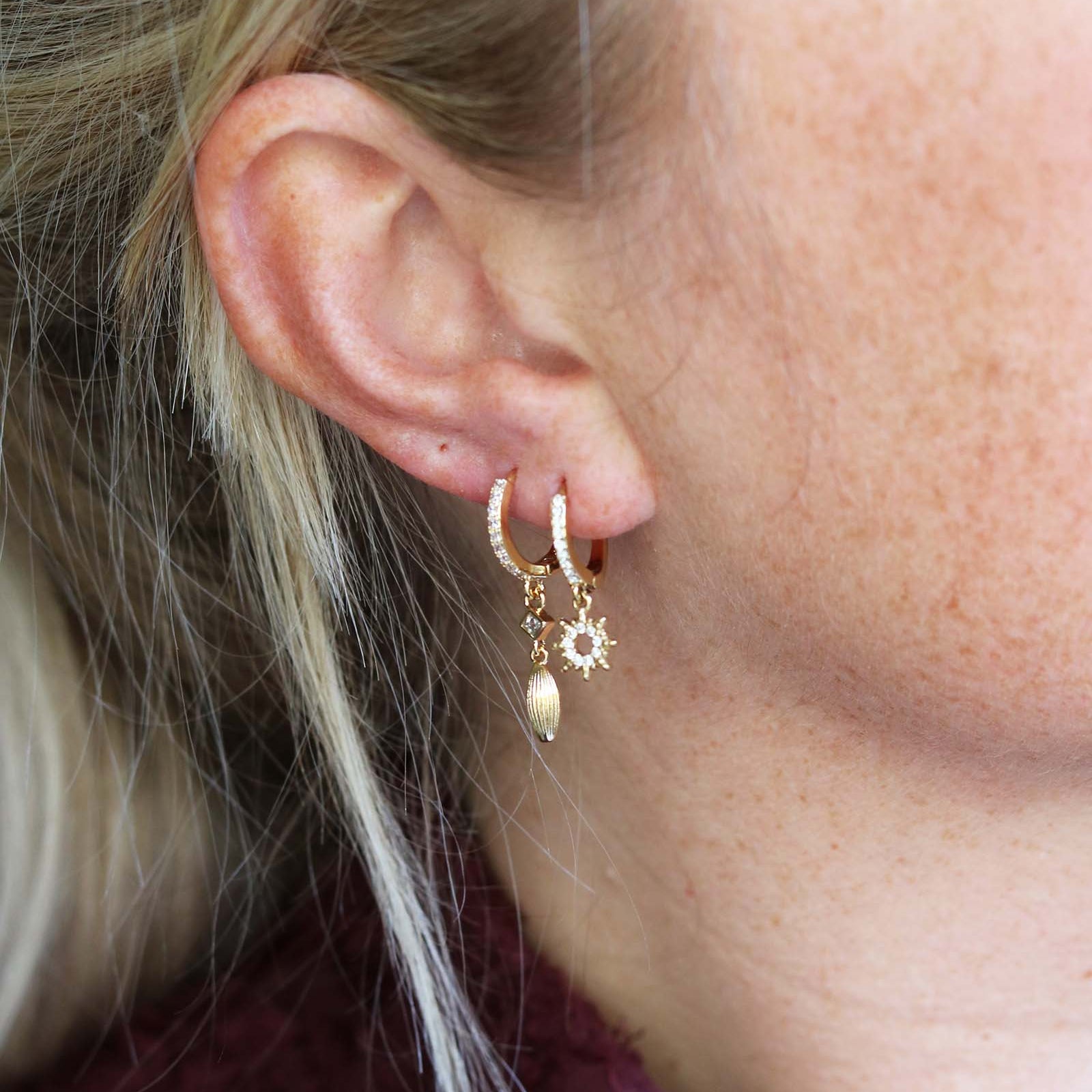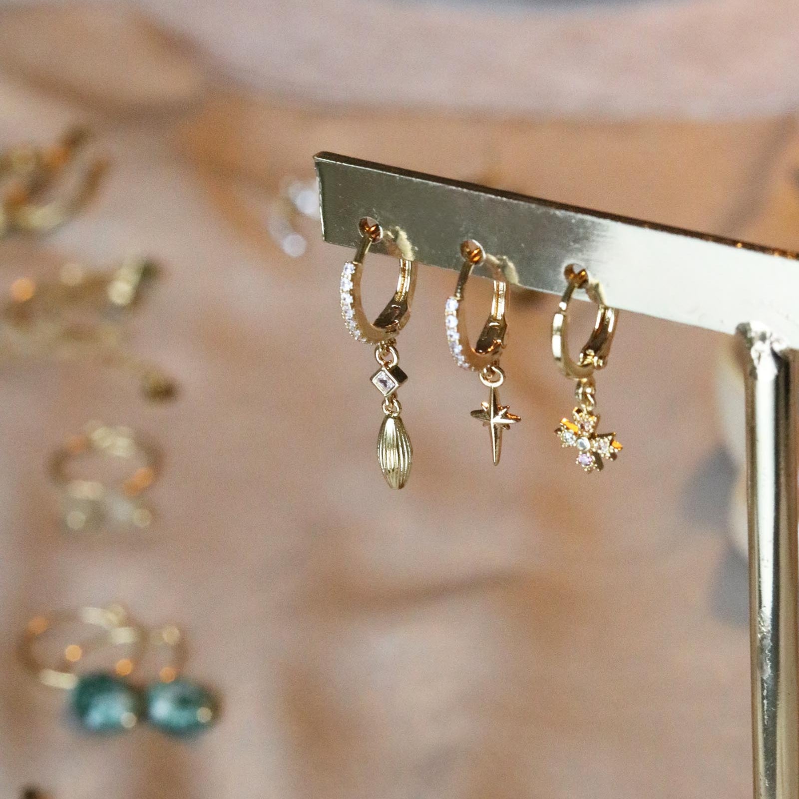 Oorringetjes met steentjes en mooie bedeltjesmateriaal: verguldkleur: goud maat: 3 cm
