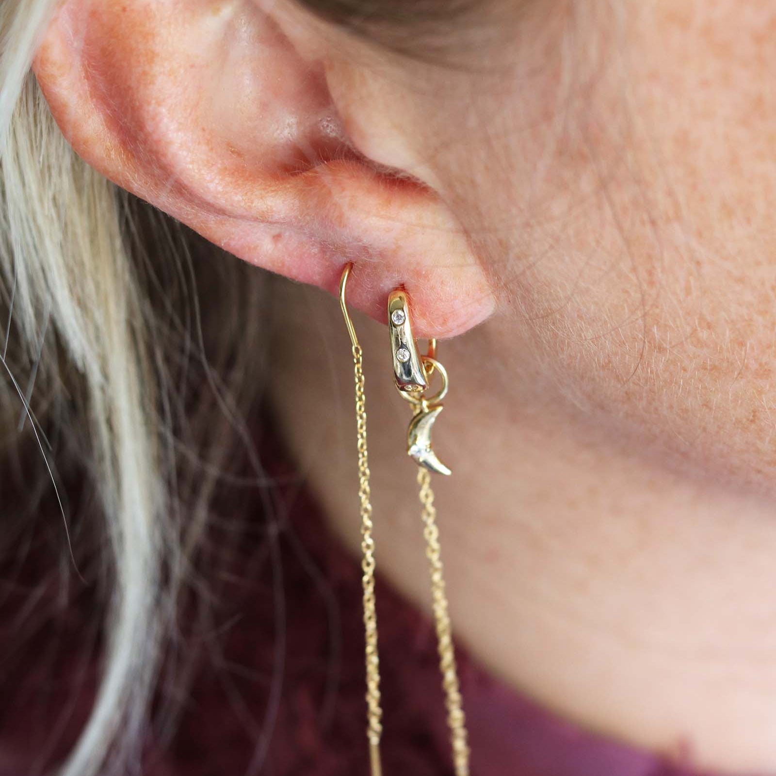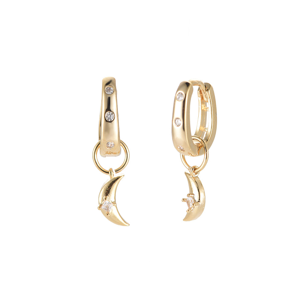 Mooie ovale oorringetjes met steentjes een een subtiel maan-hangertjemateriaal: verguldkleur: goud maat: 2,3 cm