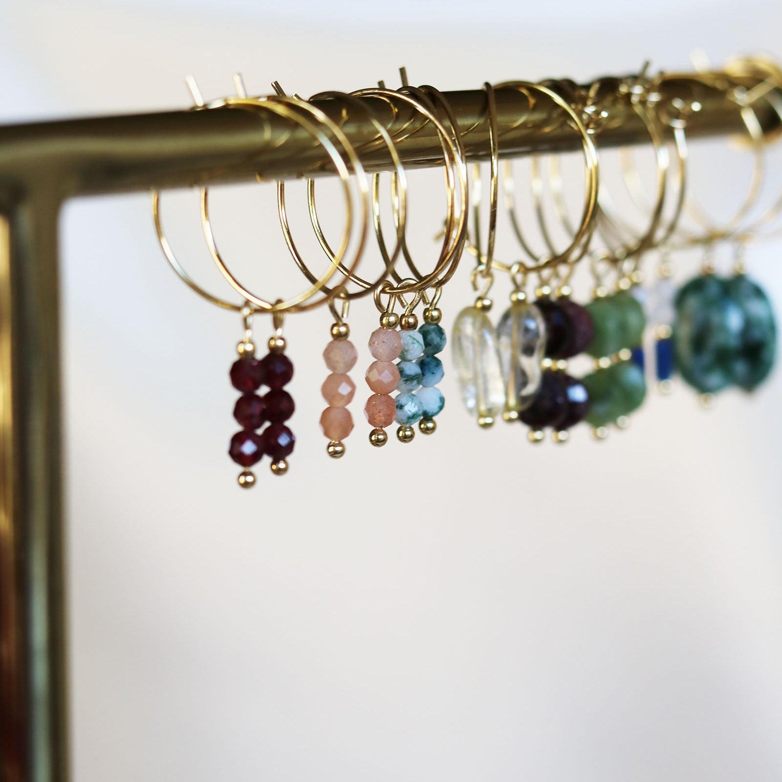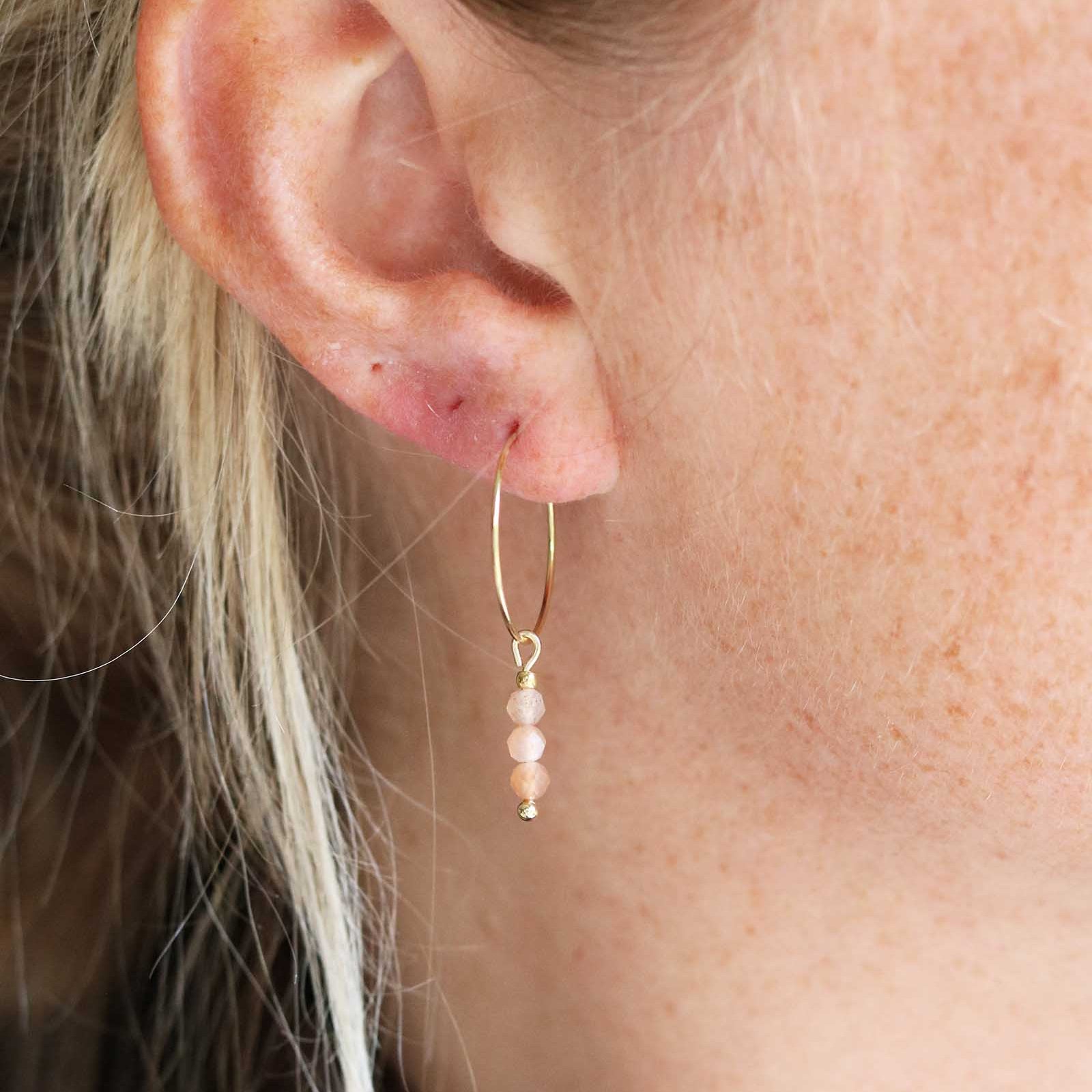 Dunne oorringetjes met subtiele natuursteentjesmateriaal: stainless steelnatuursteen: zonnesteenkleur: zalm-rozemaat: 3,5
