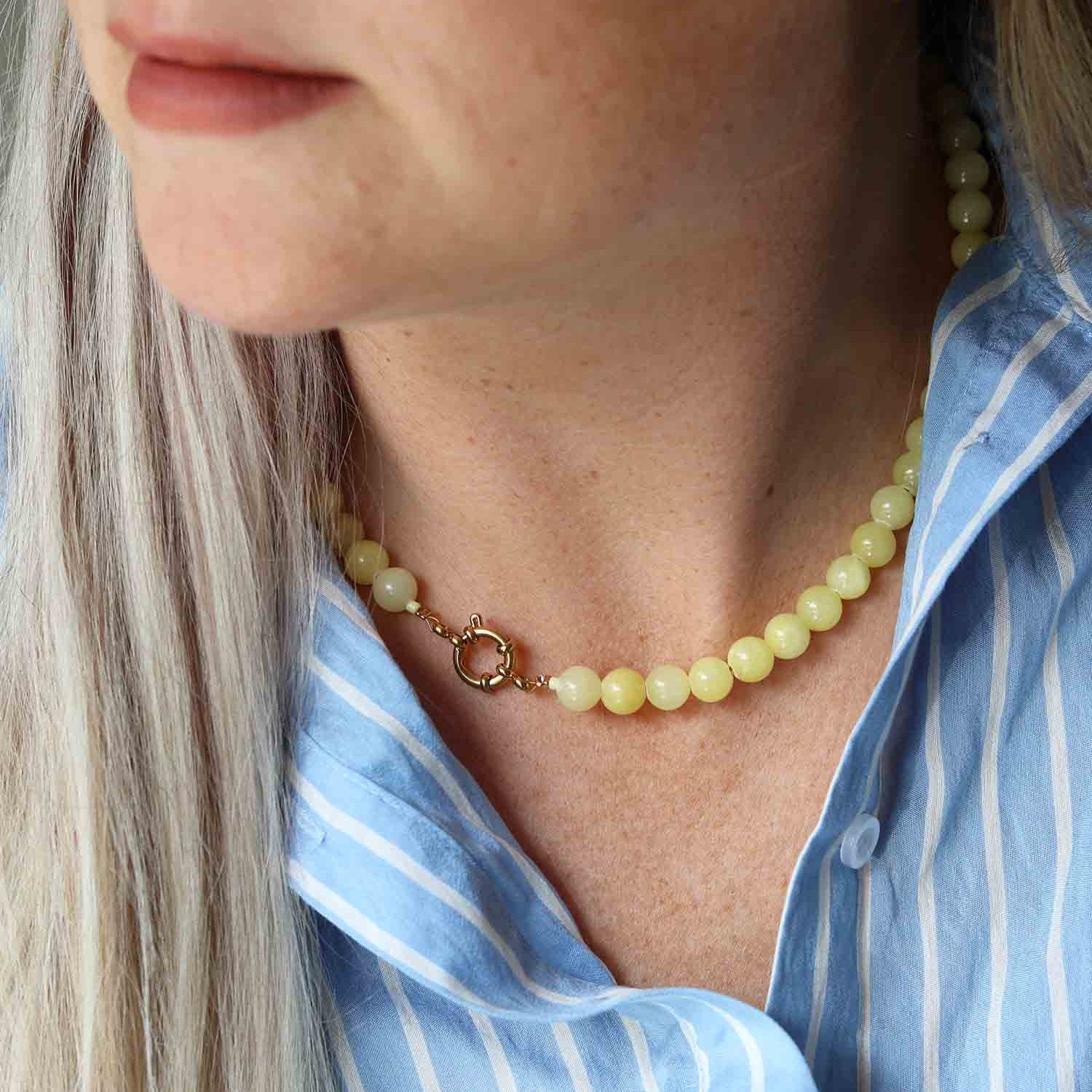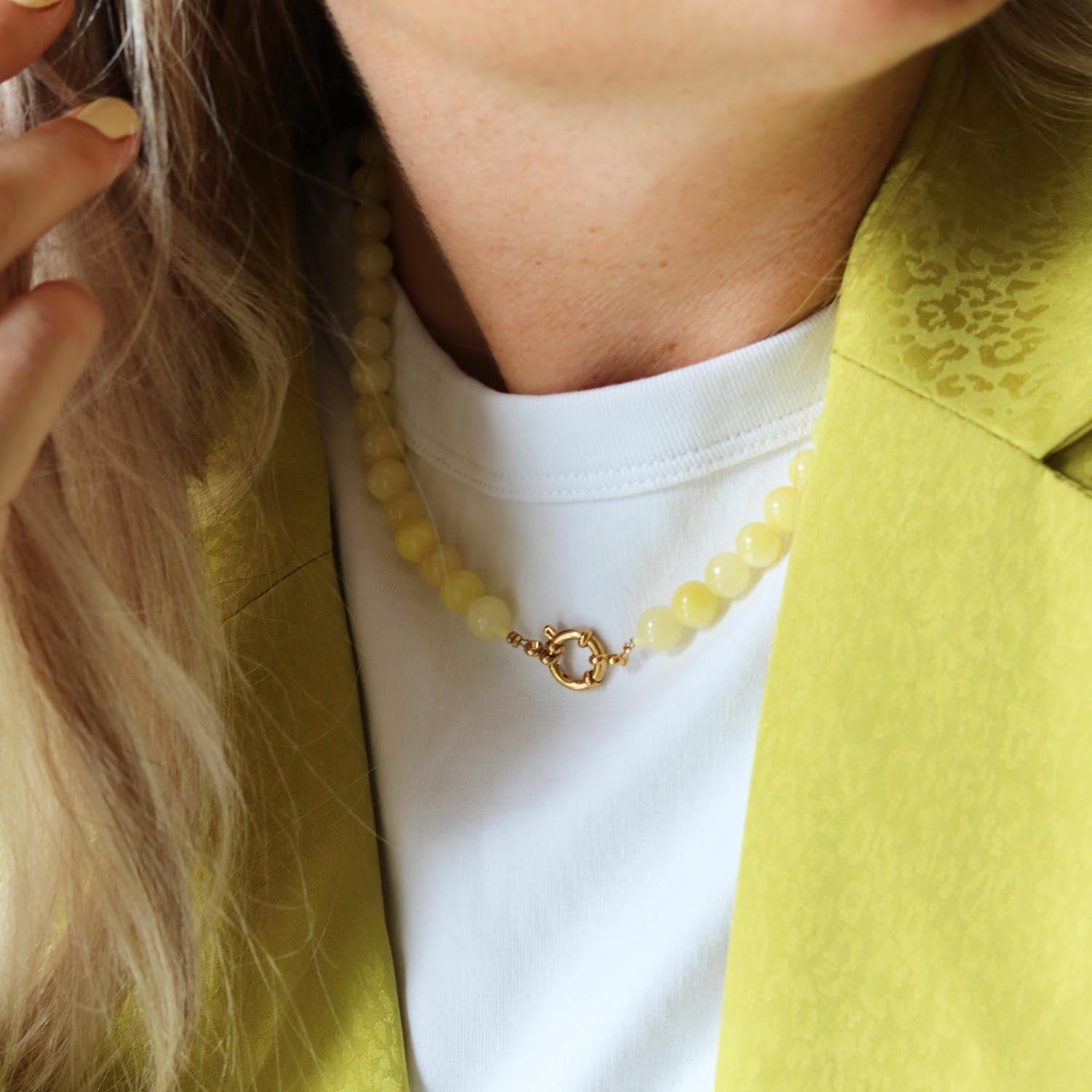 kralen ketting in botergeel